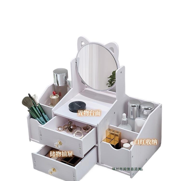 Cosmetics Storage Box Desktop Makeup Mirror Skin Care Product Storage Rack Lipstick Jewelry Organization Student Dormitory with Drawer