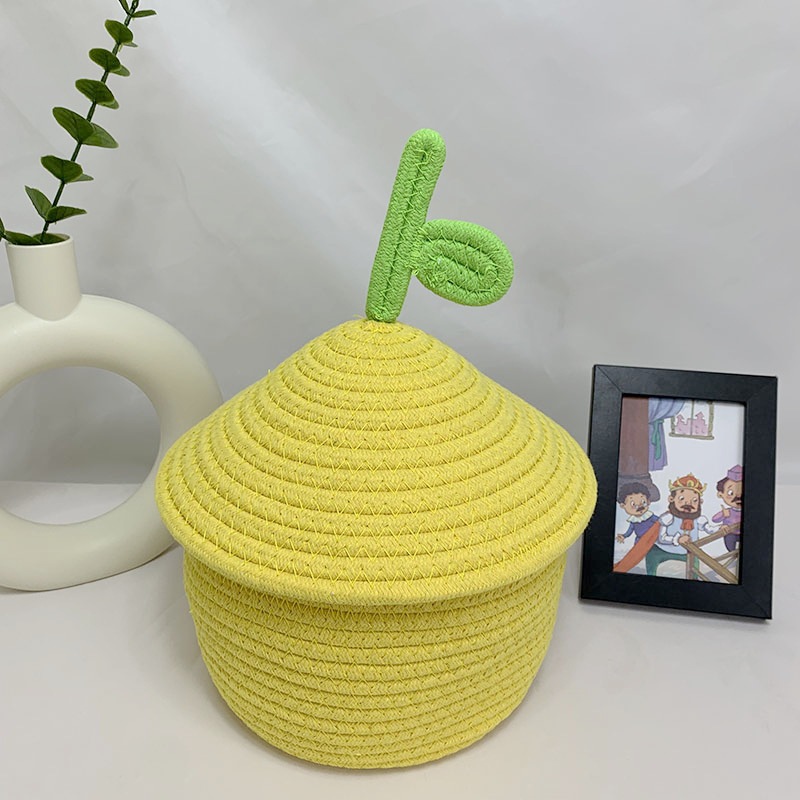 Desktop Storage Basket Cotton Rope Woven Storage Box with Lid Internet Celebrity Household Cute Snack Storage Souvenir Basket Ornaments