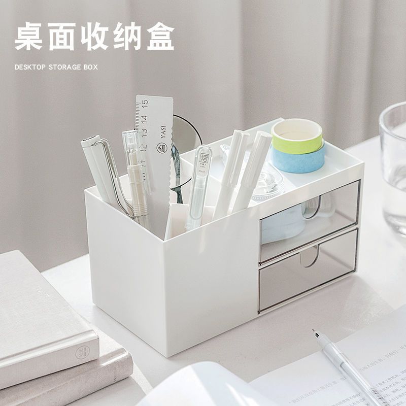 Desktop Pen Holder Storage Box Simple Modern Large Capacity Multifunctional Office Ornaments Transparent Drawer Pen Box for Girls