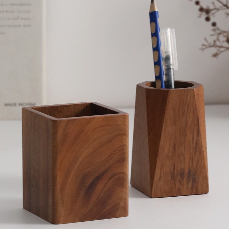 Solid Wood Pen Holder Wooden Pen Barrel Office Desktop Storage Box Creative Cute Ornaments Walnut Stationery