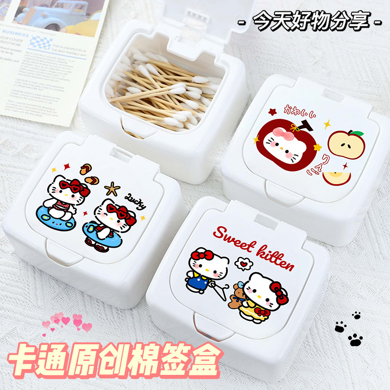 Flip-Top Desktop Storage Box, Cute Cartoon Dust-Proof Organizing Box, Hair Rope, Dental Floss, Cotton Swab Stick, Small Objects Storage Box