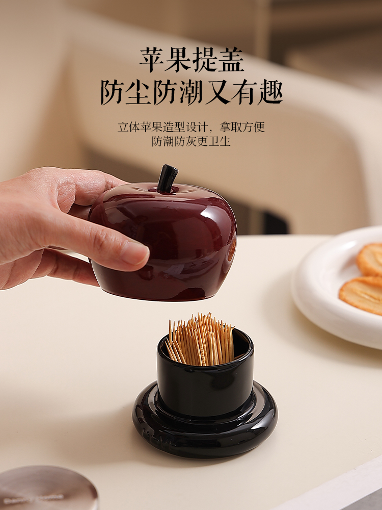✅ Ceramic Toothpick Box 2025 New Cute Apple Storage Jar Toothpick Holder High-Value Toothpick Jar Dental Floss Storage