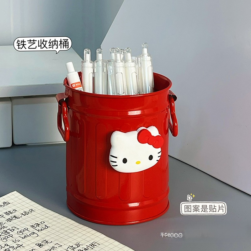 Cute Katie Pen Holder Small Iron Bucket Japanese Style Girl Heart Living Room Decoration Office Student Stationery Makeup Brush Storage
