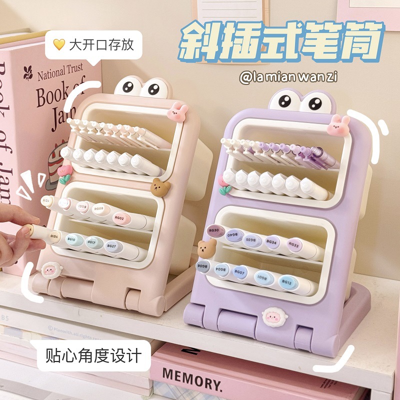 Cute Large-Capacity Pen Holder Desktop Student Stationery Storage Box Divided Oblique Pen Holder Office Pen Barrel