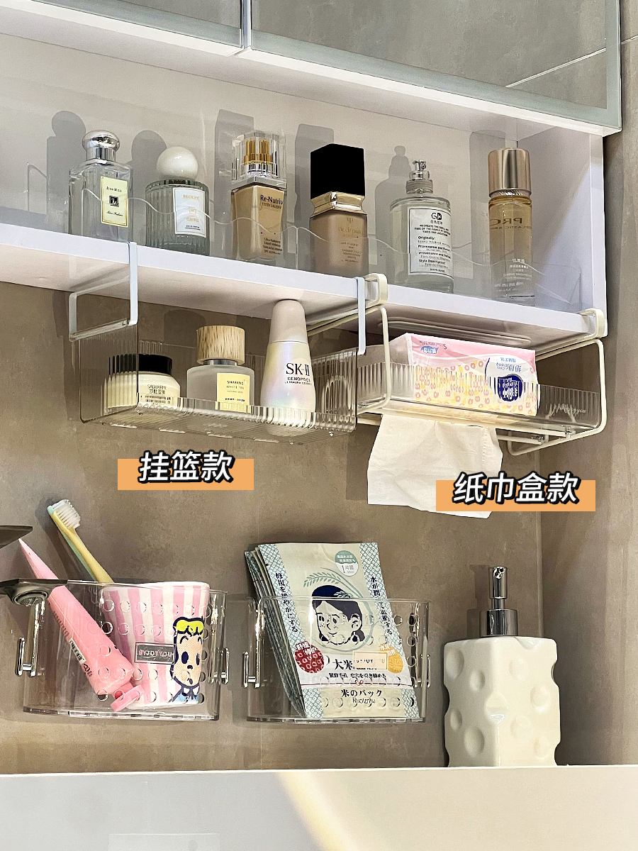 Cute Upside-Down Tissue Box under the Mirror Cabinet, Hanging Wet Wipes Storage Rack under the Wall Cabinet, Hanging Upside-Down Box, Facial Tissue Box