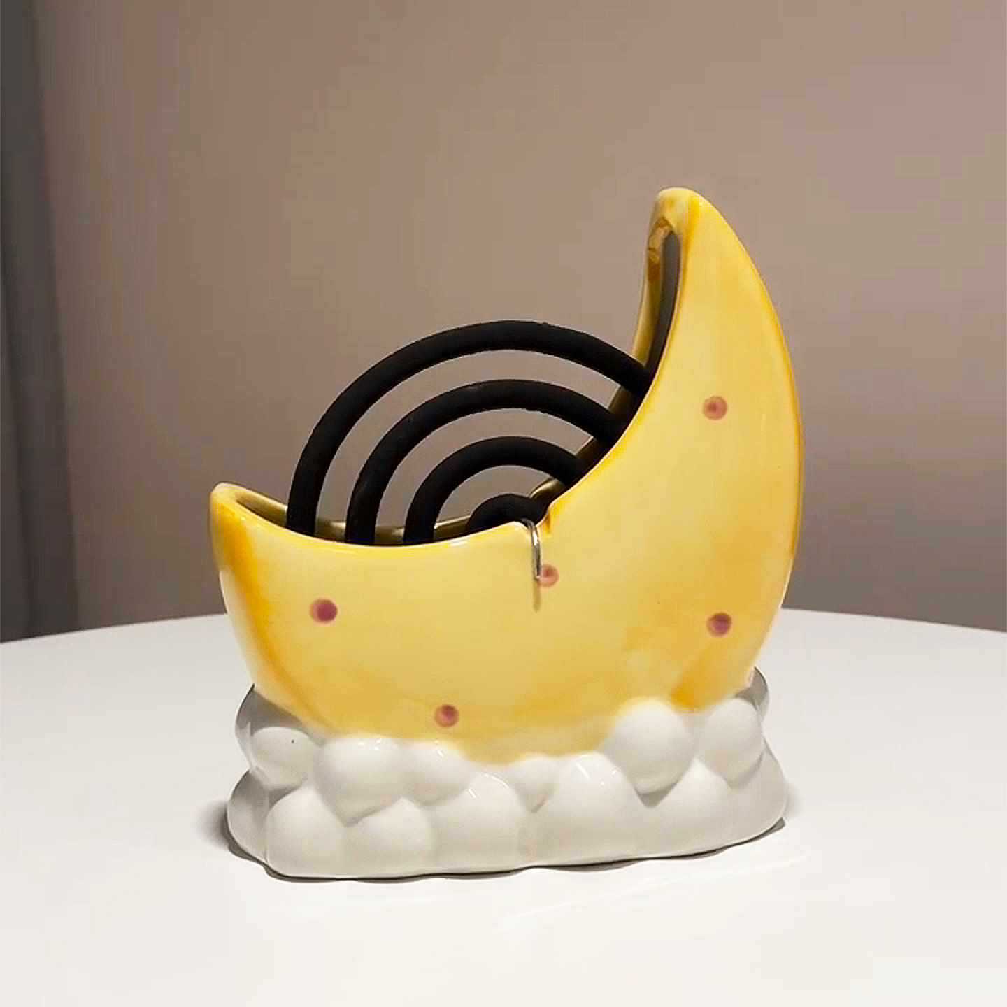 ♔ Moon-Shaped Mosquito Coil Holder for Indoor Use, Cute and Creative Ash-Catching Mosquito Coil Burner, Easy to Clean, High-Value Ceramic Desktop Decoration