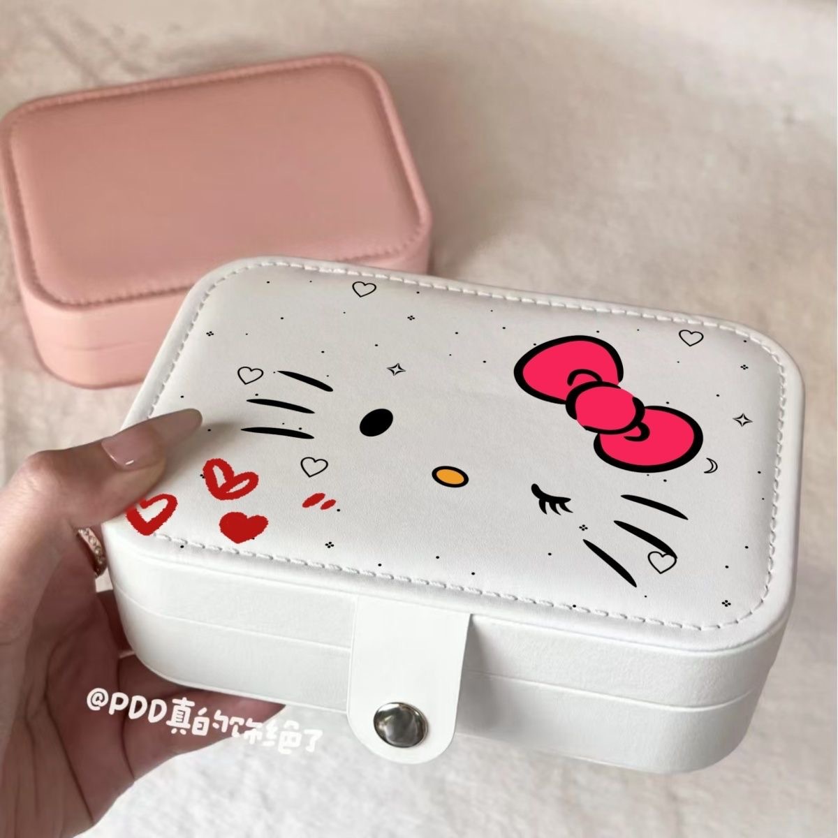 Cute Hello Kitty Portable Earrings Jewelry Box Necklace Ring Bracelet Small Mini Hand Jewelry Storage Box