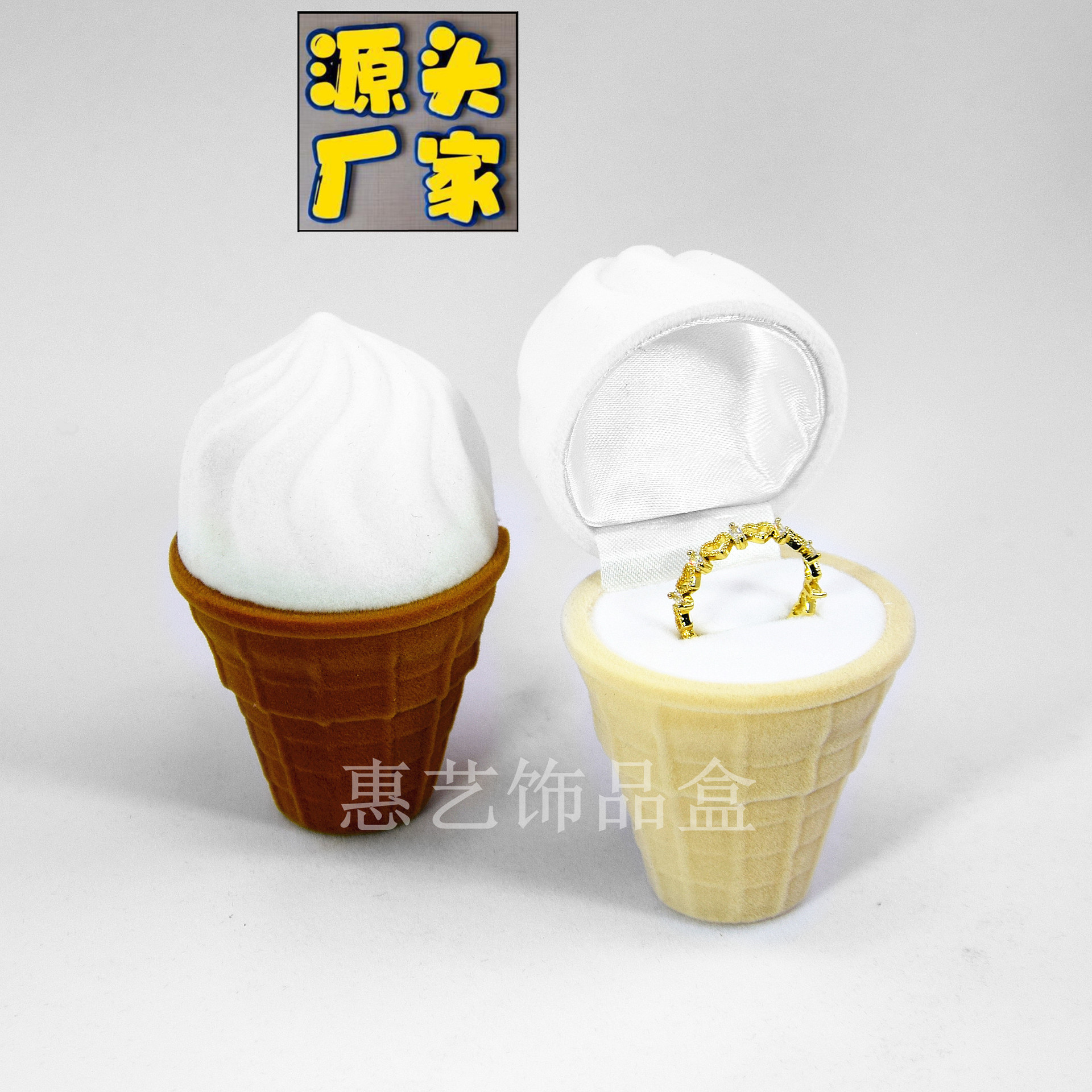 Huiyi Spot Ice Cream Jewelry Box Jewelry Packaging Box Cute Cone Earrings Flocked Ring Box