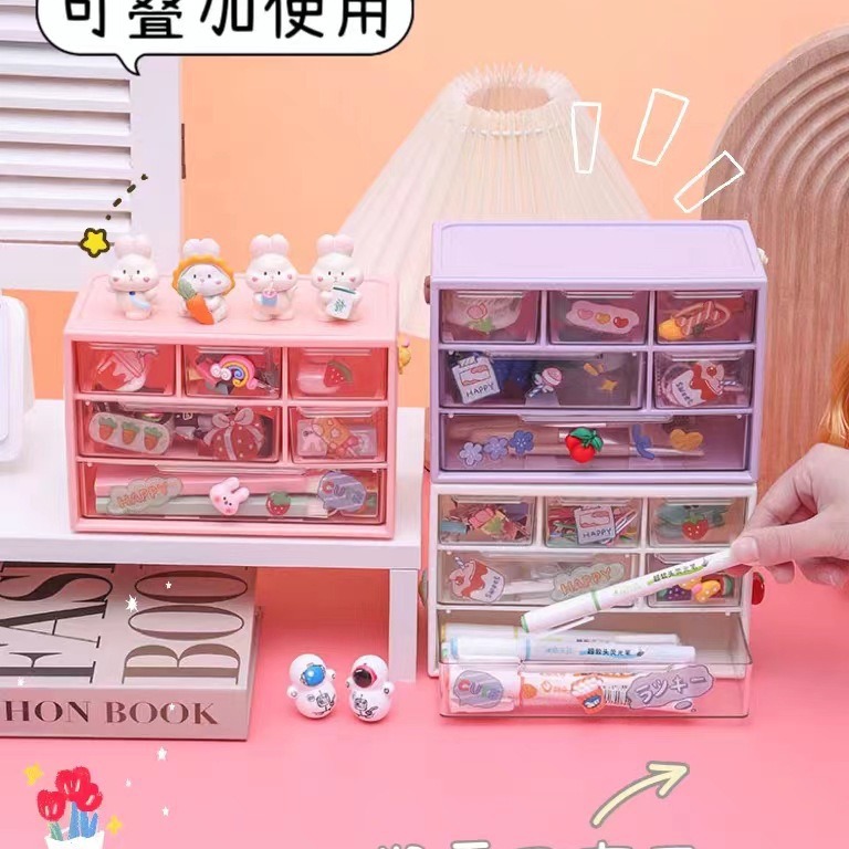 Cute Desktop Storage Box Drawer Type Organizer Plastic Stationery Hair Accessories Small Sundries Transparent Student Desk Pen