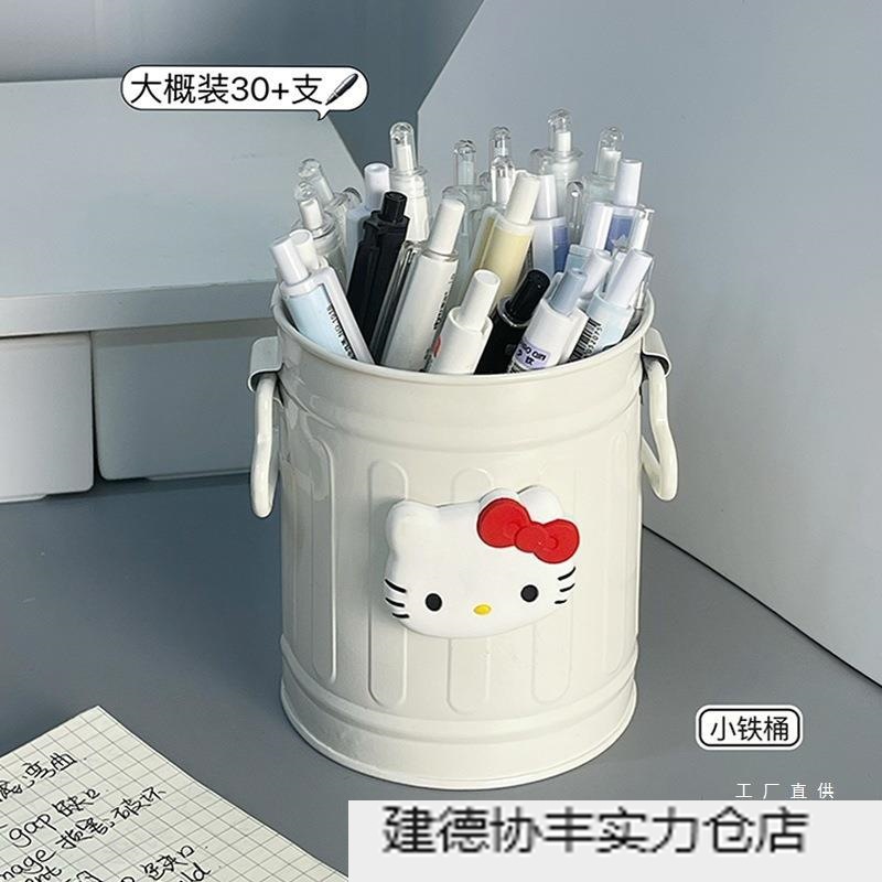 Cute Katie Pen Holder Small Iron Bucket Japanese Style Girl Heart Living Room Decoration Office Student Stationery Makeup Brush Storage