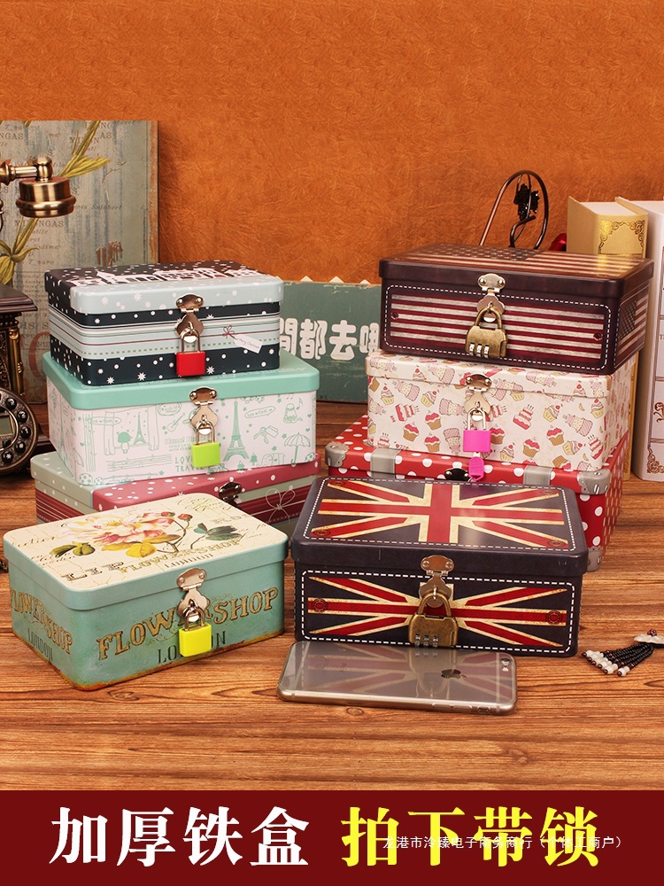 Iron Box Password Lock Storage Box Key Jewelry Desktop Cosmetics Mobile Phone Storage Student Home Small Box
