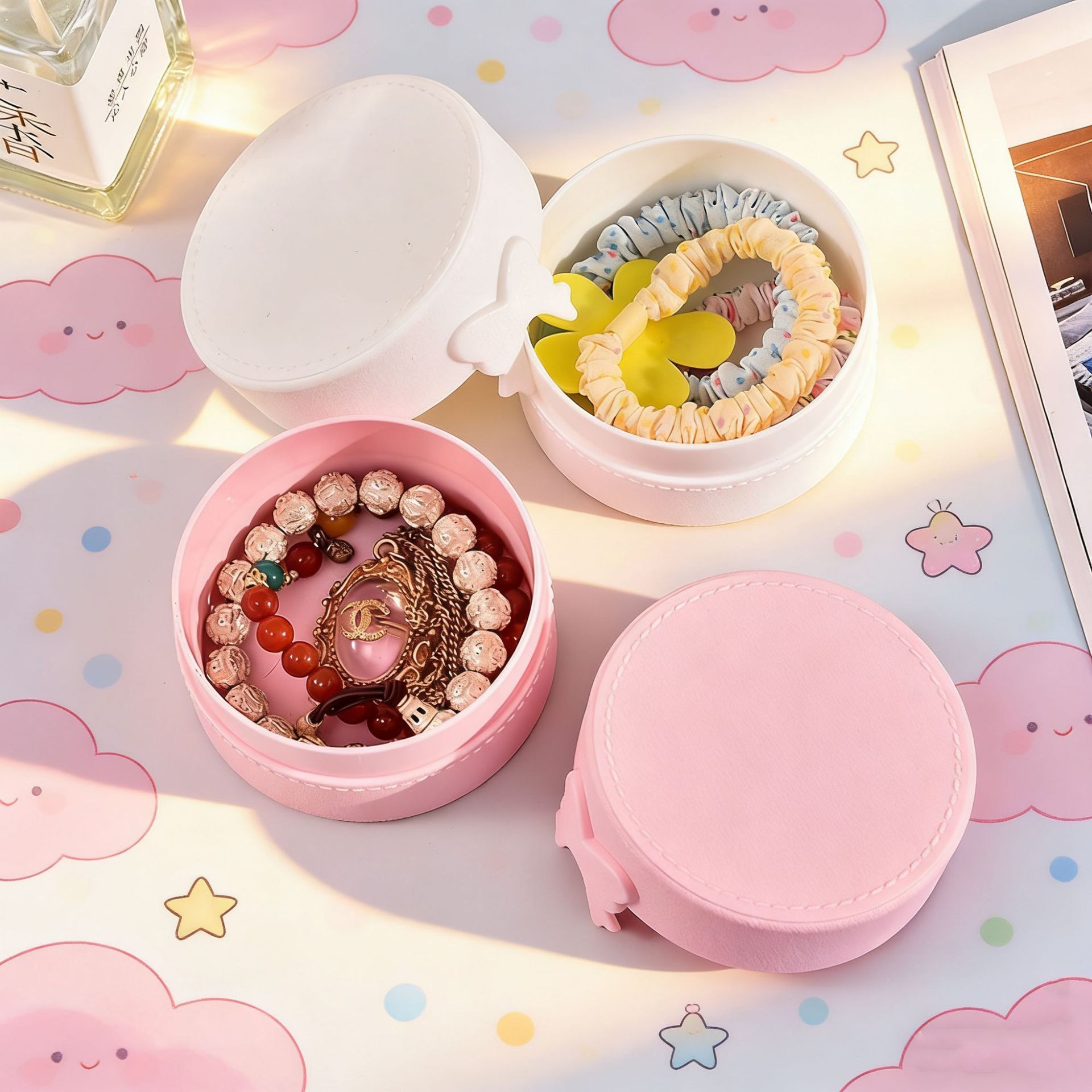 Portable Jewelry Box Desktop Cute Waterproof Cartoon Powder Puff Hair Band Storage Box Plastic Sundries Organizing Small Box