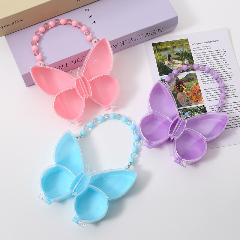 Factory Direct Supply Plastic Satchel Jewelry Storage Box Creative Butterfly Storage Box Cute 5-Compartment Transparent Plastic Box