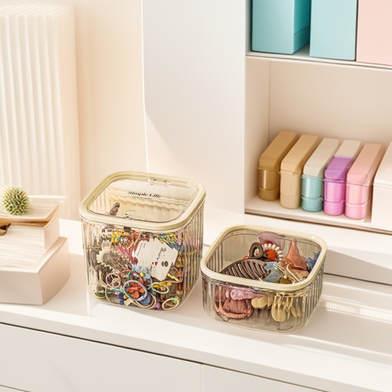Light Luxury Desktop Trash Can with Press Lid, Cute Children's Hair Accessory Clip with Lid, Jewelry Box, Elastic Hair Tie Organizer Box
