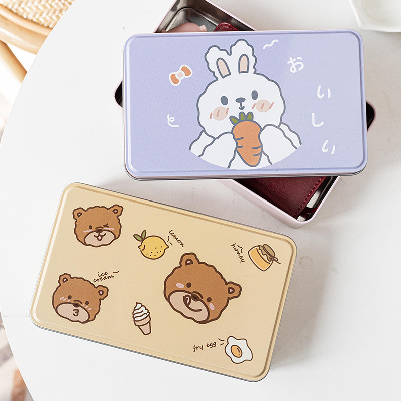 Small Fresh Tinplate Storage Box Desktop Rectangular Small Tin Box Cute Cartoon Jewelry Storage Box Candy Box