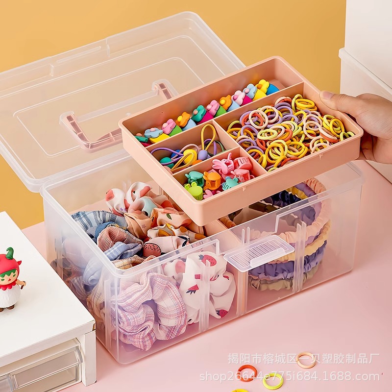 Portable Storage Box with Lid for Bedroom, Children's Hair Accessories, Desktop Plastic Jewelry, Transparent Double-Layer Creative Cute Storage Box