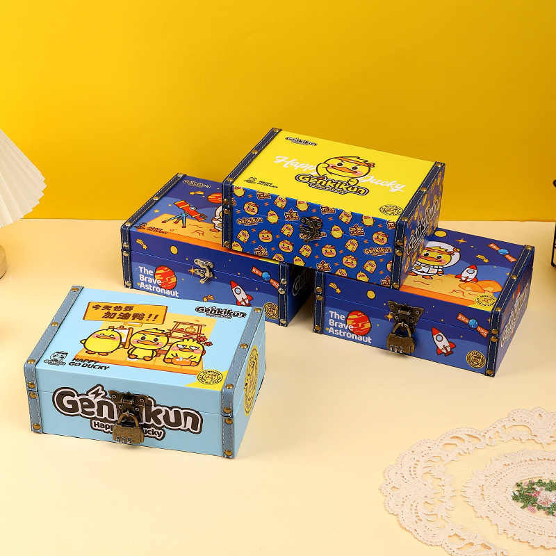 Cartoon Cute Little Yellow Duck Storage Box Small Box for Boys and Girls with Lock Desktop Storage Jewelry Box Password Lock Box