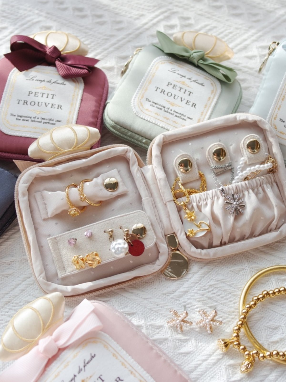 Cute Bow Perfume Bottle Mini Jewelry Bag Portable Jewelry Storage Bag Portable Necklace Ring