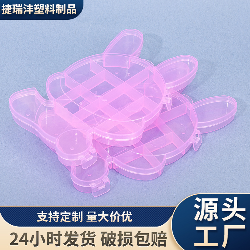 Transparent and Cute 10+1 Grids Pink Rabbit Storage Box with Lid Transparent Pp Plastic Box Necklace Ring Organizing Box