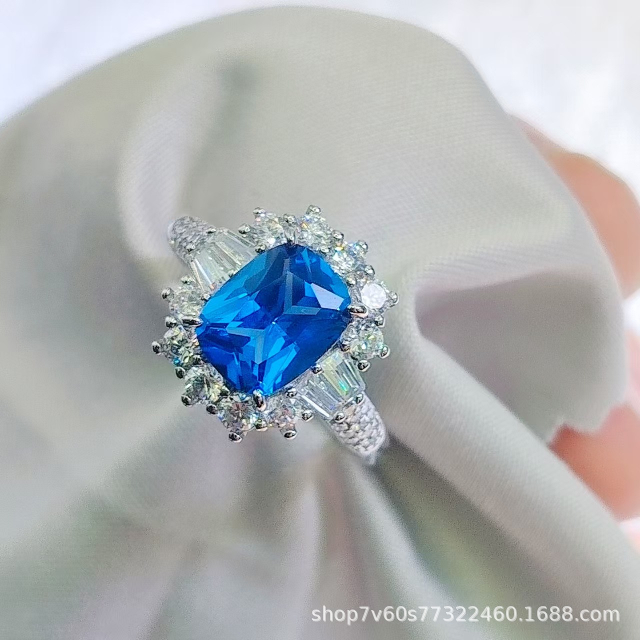 European and American Designer Inlaid Natural Imitation Royal Blue Sapphire Ring Women's Pigeon Red Color Treasure High Carbon Diamond Ring