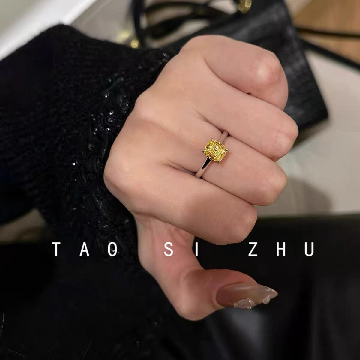 Lucid Yellow Diamond Niche Designer Internet Celebrity Korean-style All-match Simple Light Luxury High-end Sense Zircon Open Ring Women's Ring