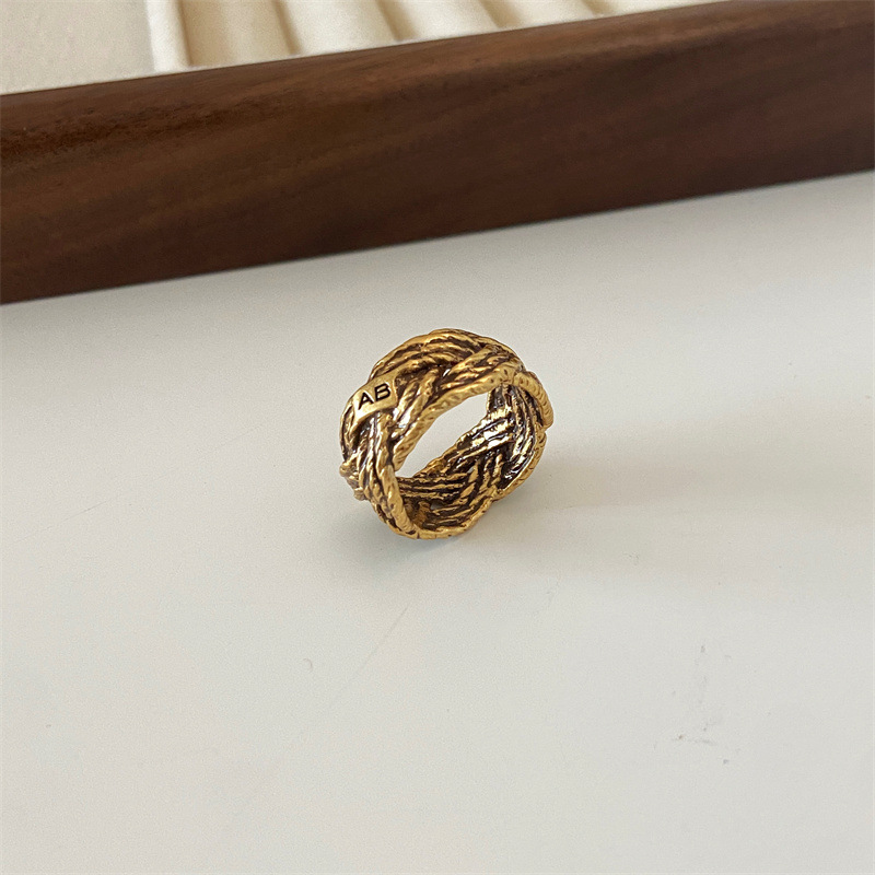 French Niche Designer Ring Women's Copper Gold Plated Fashionable Vintage Metal Chain Wheat Ear Woven Ring