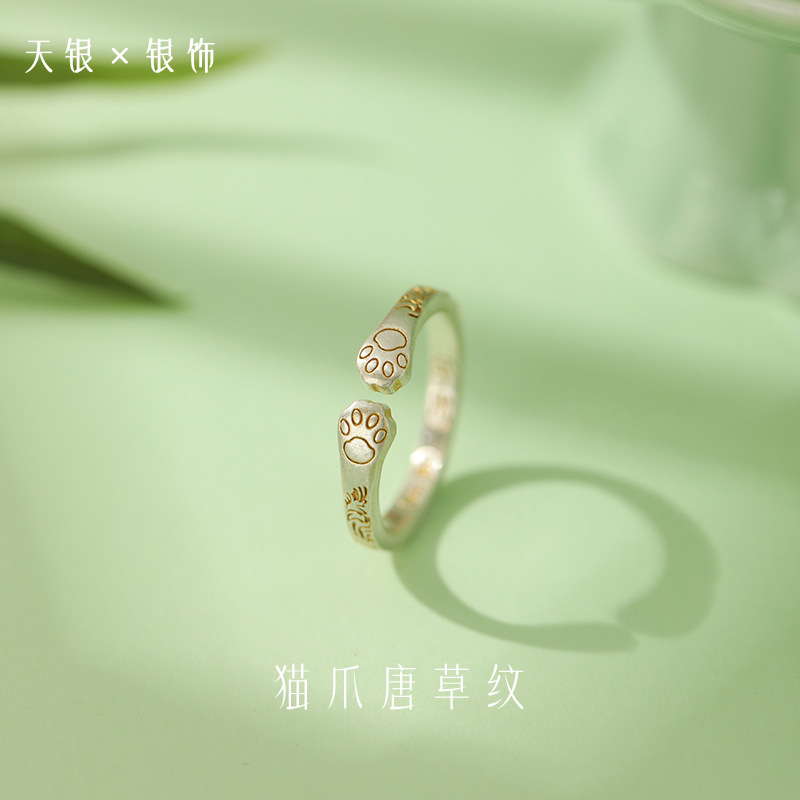 S999 Pure Silver Sweet Girly Cat Claw Ring for Women, Light Luxury, Cute and Playful Niche Design Open Ring for Wholesale