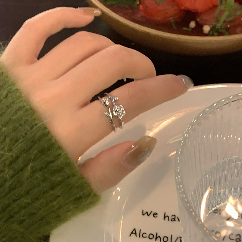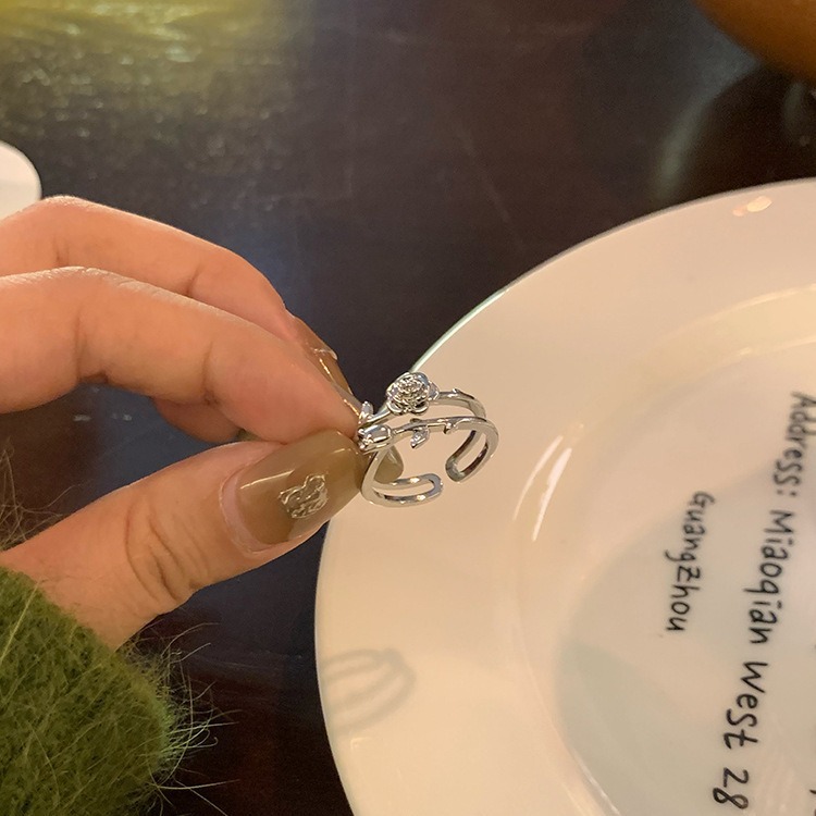 Rose Flower Double-Layer Open Ring Niche Design High-End Cold Style Index Finger Ring Fashion Personalized Ring for Women