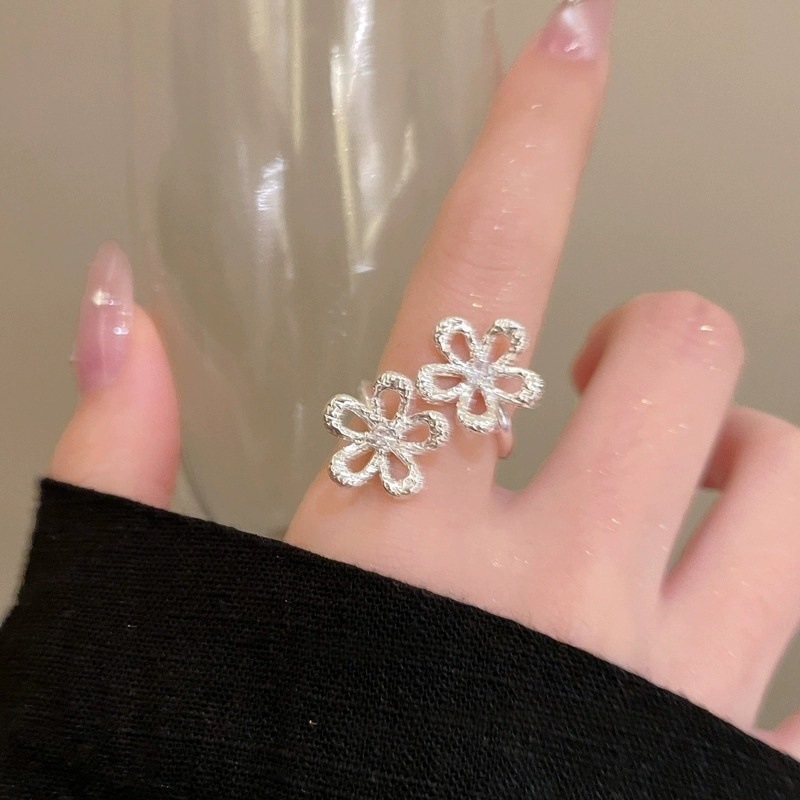 Silver Cut Out Flower Ring for Women, Niche Design, Korean Index Finger Ring, Adjustable Opening, Unique and Sweet Ring