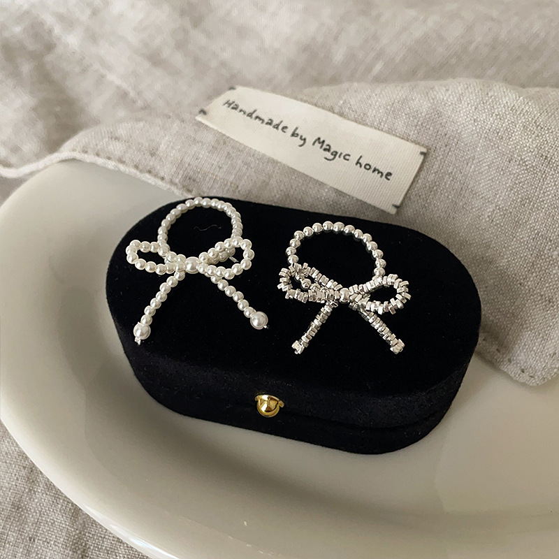 Broken Silver Pearl Bow Elastic Ring Women's Niche Design Sense Exquisite Personality Fashion All-match Ring Ring