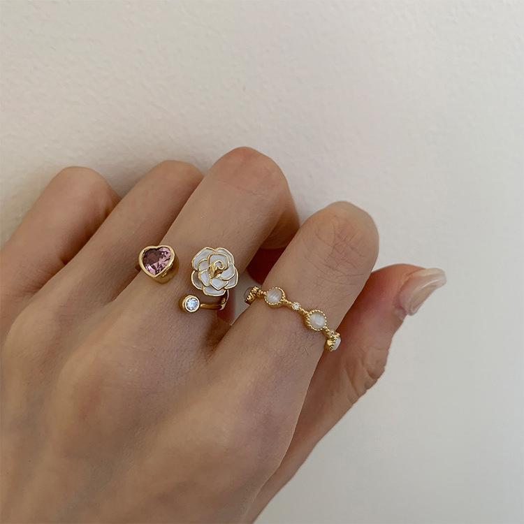 Niche Design Sense Zircon Love Drop Oil Flower Cat's Eye Ring Women's Personality Simple All-match Elegant Ring