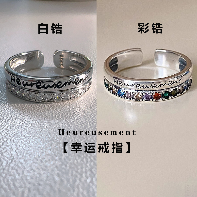 Letter Lucky Ring Women's Hip Hop Style Design Sense Niche Index Finger Opening Ring ins Cold Wind Factory Wholesale