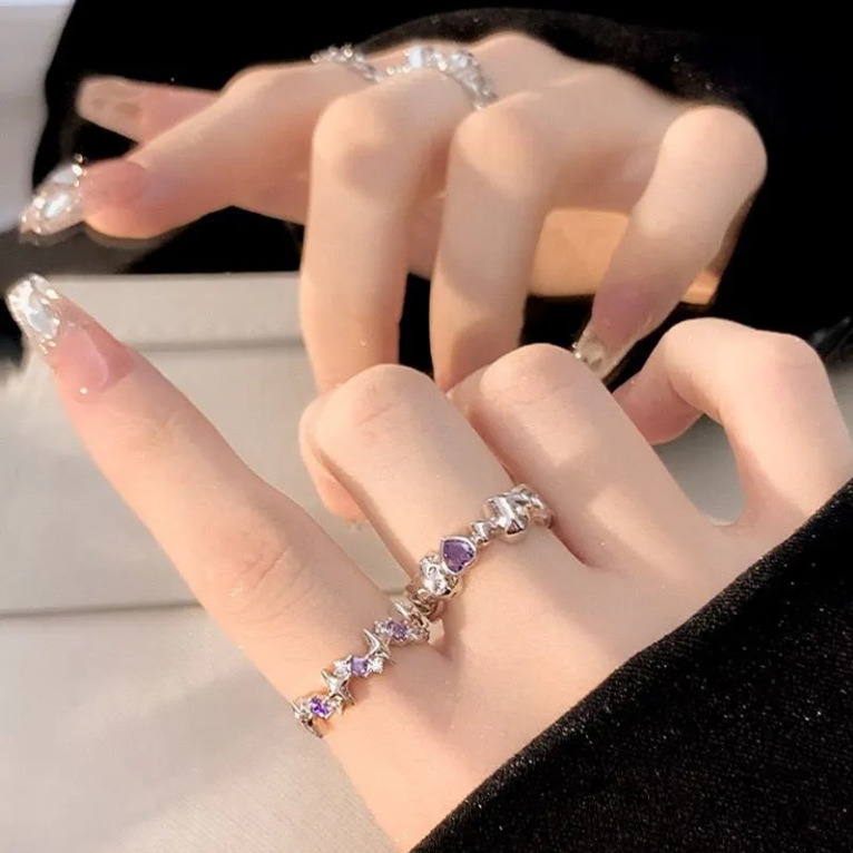 Niche Design Ring Purple Zircon Cold Style Dark Design Sense Fashion Light Luxury All-match Opening Adjusting Women's Ring