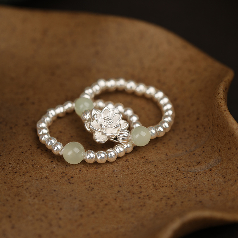 New Style Fresh and Simple New Chinese Lotus Beaded Ring Women's Niche Design Fashion Personalized Finger Ring
