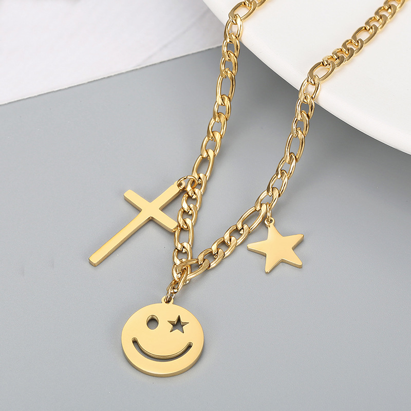 Cross-border Fashion Smiley Necklace Cross Five-pointed Star Design Sense Women Ins Trendy Clavicle Chain Titanium Steel Jewelry