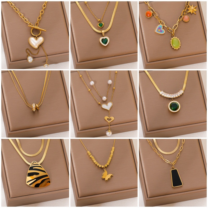 [Titanium Steel] Light Luxury Titanium Steel Necklace Pendant Fashion Design Sense Gold Plated Stainless Steel Collarbone Chain Wholesale