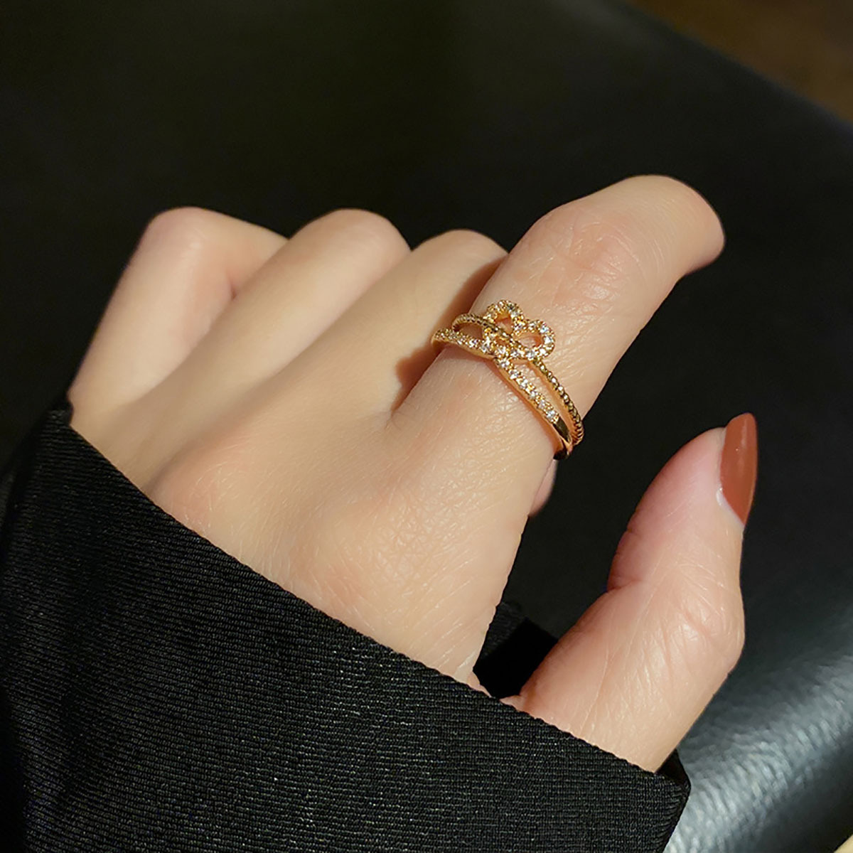 Qiyu fashion niche design double-layer love open ring rose gold copper inlaid zircon index finger ring adjustable