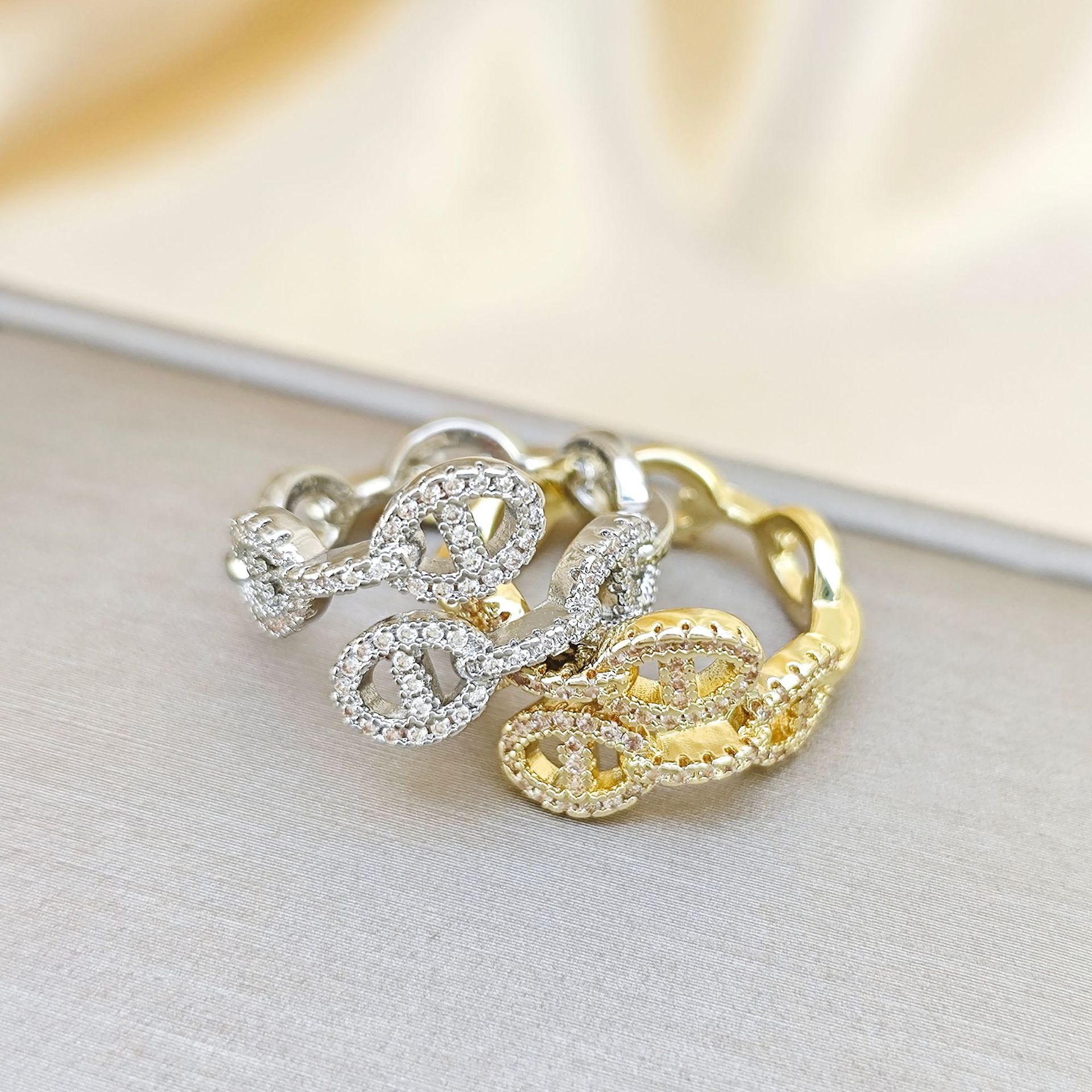 European and American Cross-border Fashion Light Luxury Color Diamond Chain Pull-out Ring Women's Niche Design Sense Explosive Trendy Retro Index Finger