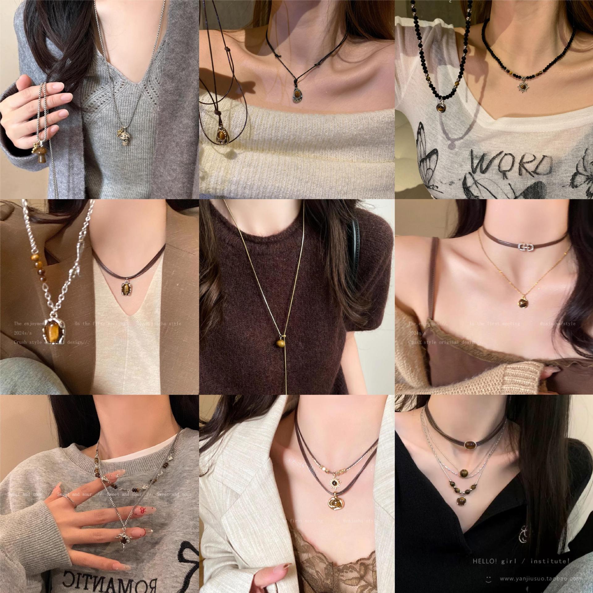 Korean style design sense tiger eye stone necklace women's light luxury high sense long clavicle chain Joker sweater chain wholesale