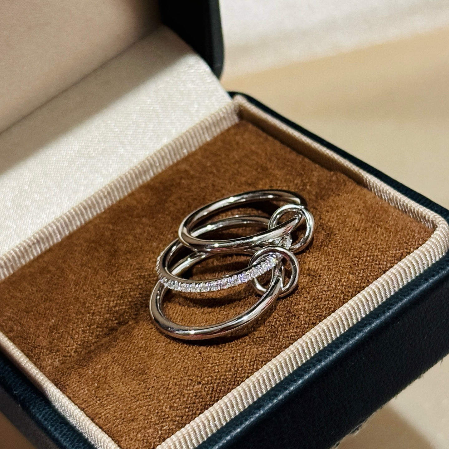 Independent Designer Three-Ring Interlocking S925 Sterling Silver Gold-Plated Diamond Elegant Simple European and American Ring for Women