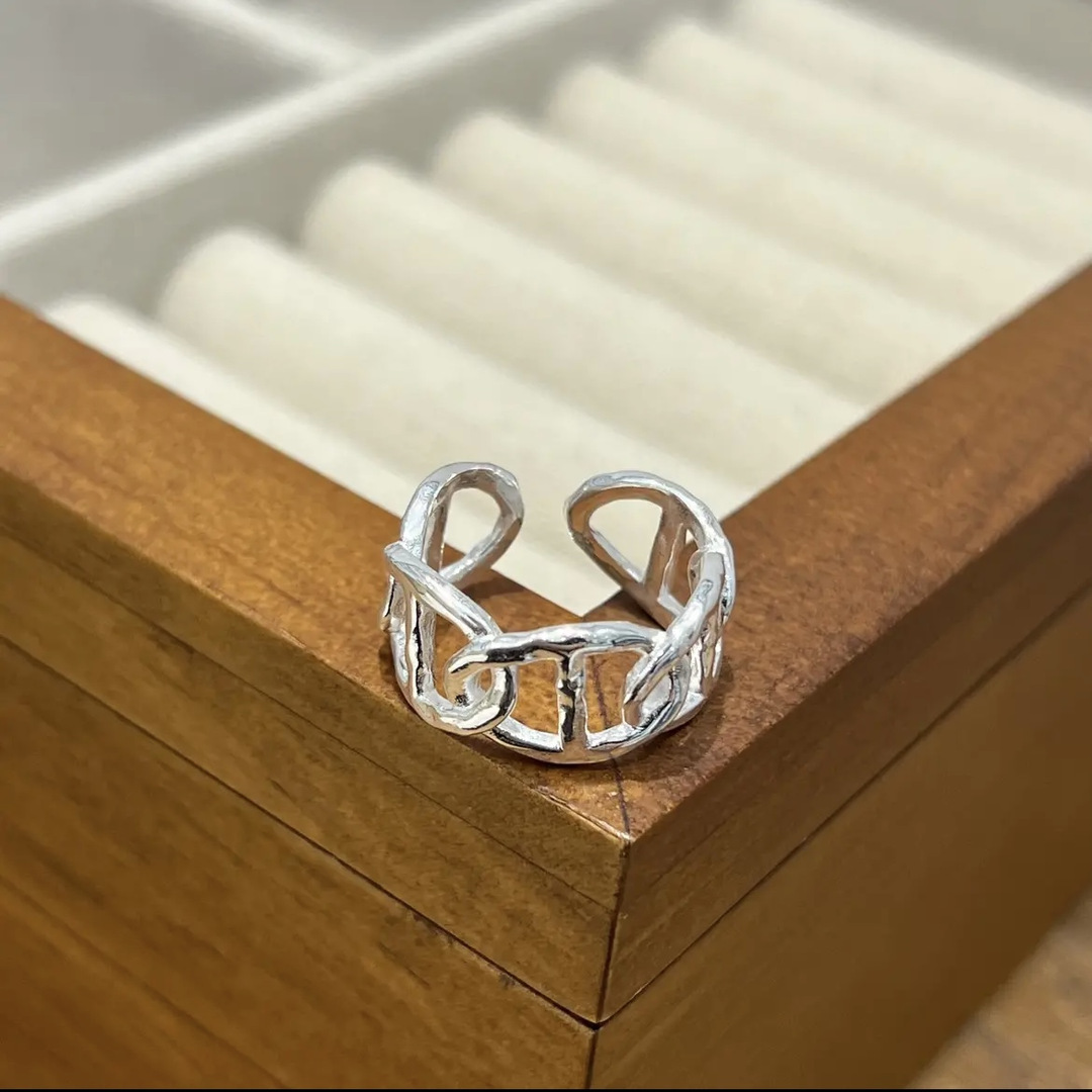 1016 Korean Style S925 Sterling Silver Ring Ins Designer Vintage Old Artistic Thick Chain Open Ring Ring