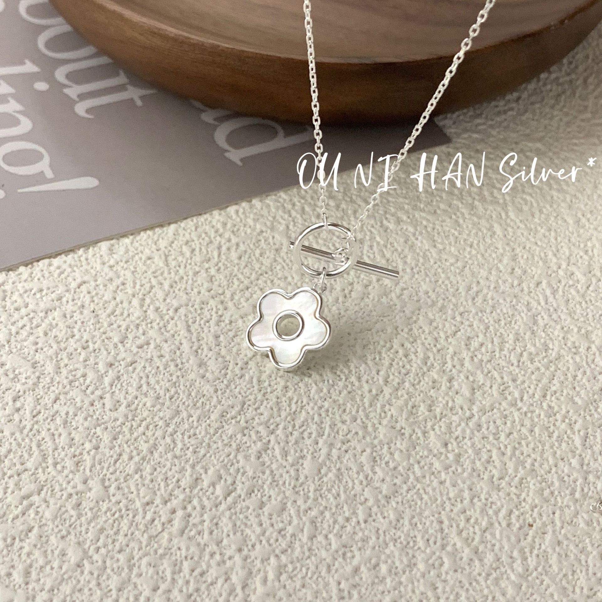 Onihan S925 full-body sterling silver fritillary flower necklace Korean niche light luxury designer clavicle chain silver ornaments