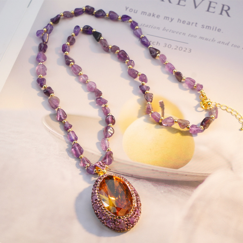 Designer Niche Personality Full Inlay Necklace Chain Woolen Chain Purple Sudan Stone Color Changing Factory Outlet