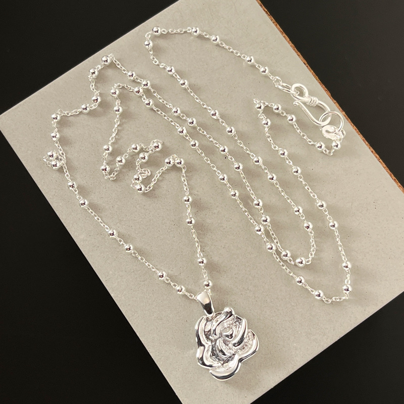 925 sterling silver rose silver bead necklace for women South Korea simple niche designer heavy work sweater chain 0407B