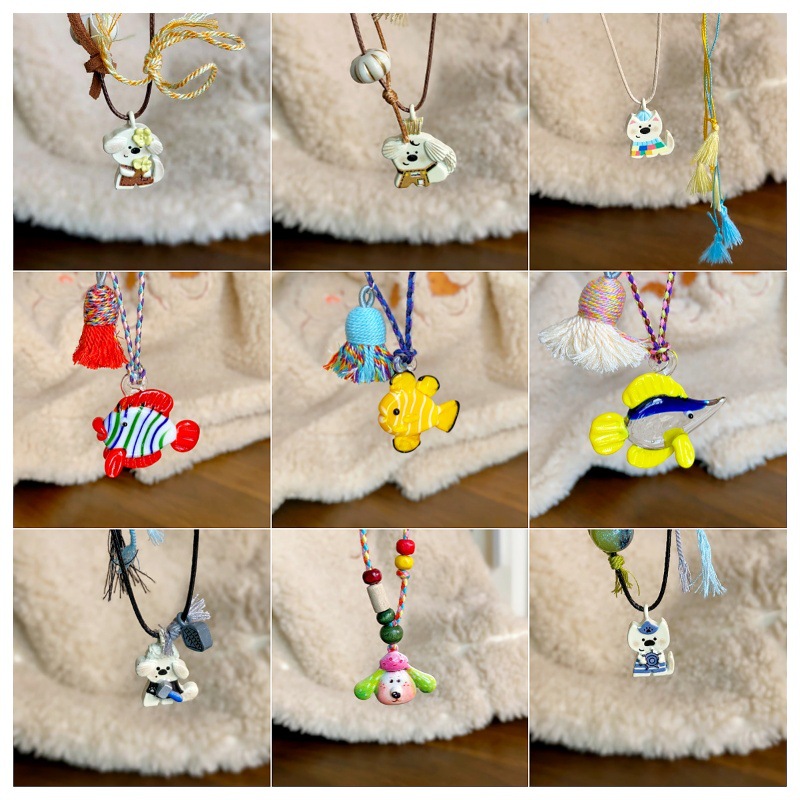 Puppy Barista Braided Rope Ceramic Necklace Female Cute Cartoon Niche Clavicle Chain Summer Design Necklace Accessories