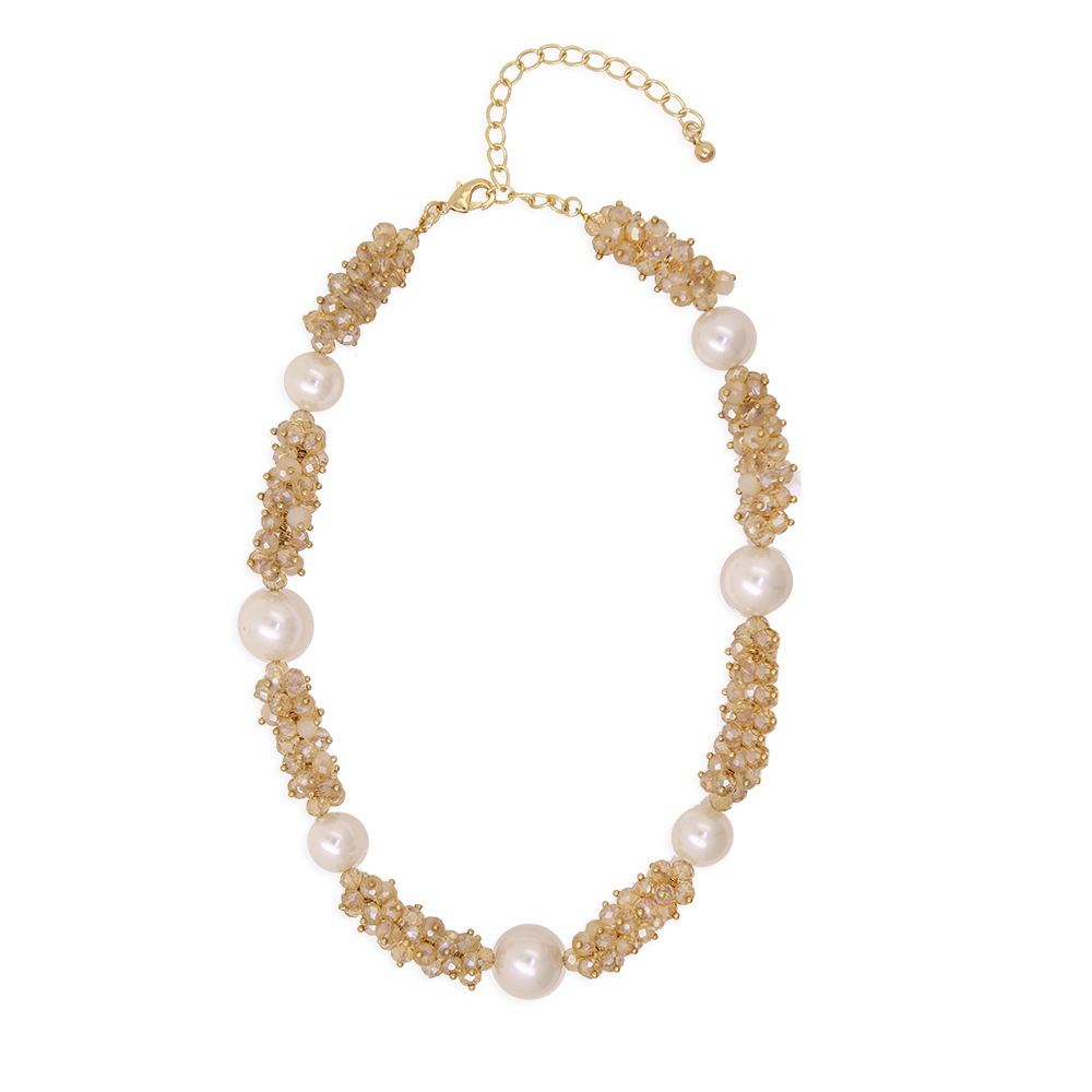 [2 Colors Available] Imitation Pearl Mixed with Glass Crystal European and American Designer Necklace, Guangdong Export Special