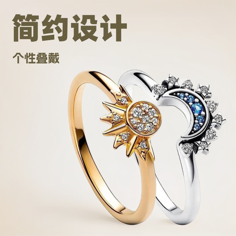 Jewelry Accessories Cross-Border Hot-Selling European and American Simple Design Sun and Moon Stacking Rings for Women with Diamond Inlay