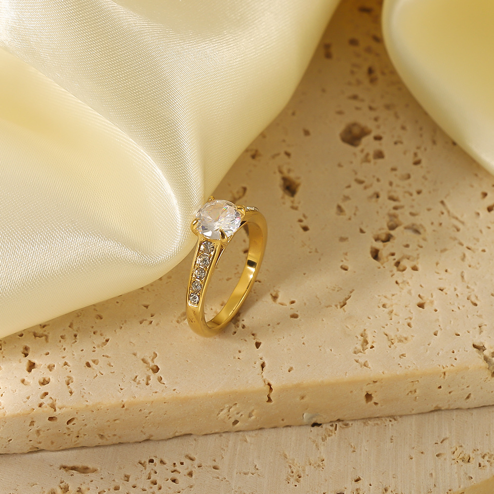 ins trendy four-claw zircon stainless steel 18K gold ring female niche design retro temperament online celebrity jewelry