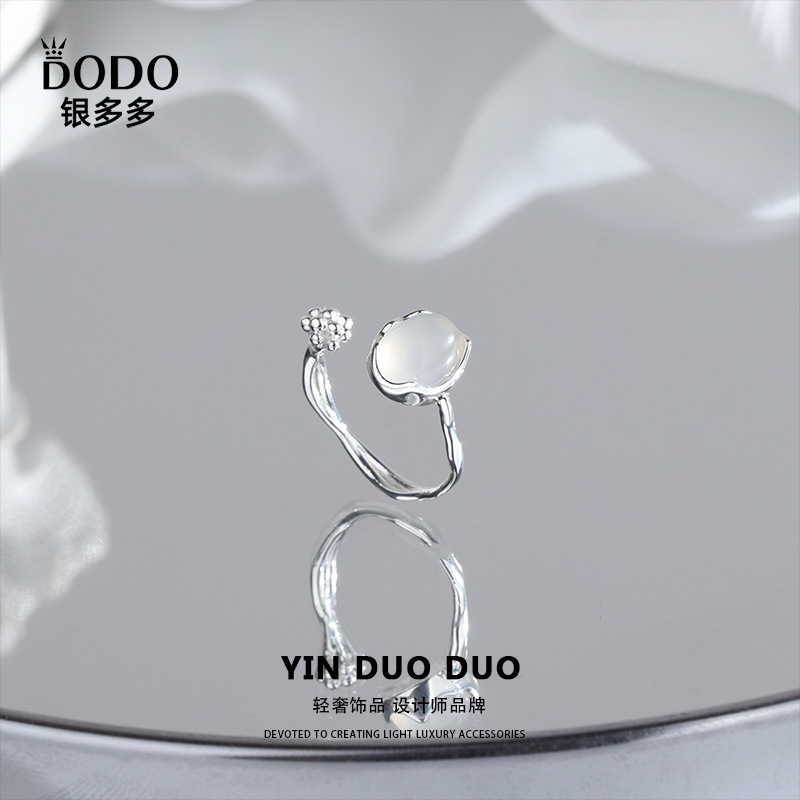 s925 sterling silver white chalcedony ring female irregular niche design sense texture dandelion ring opening