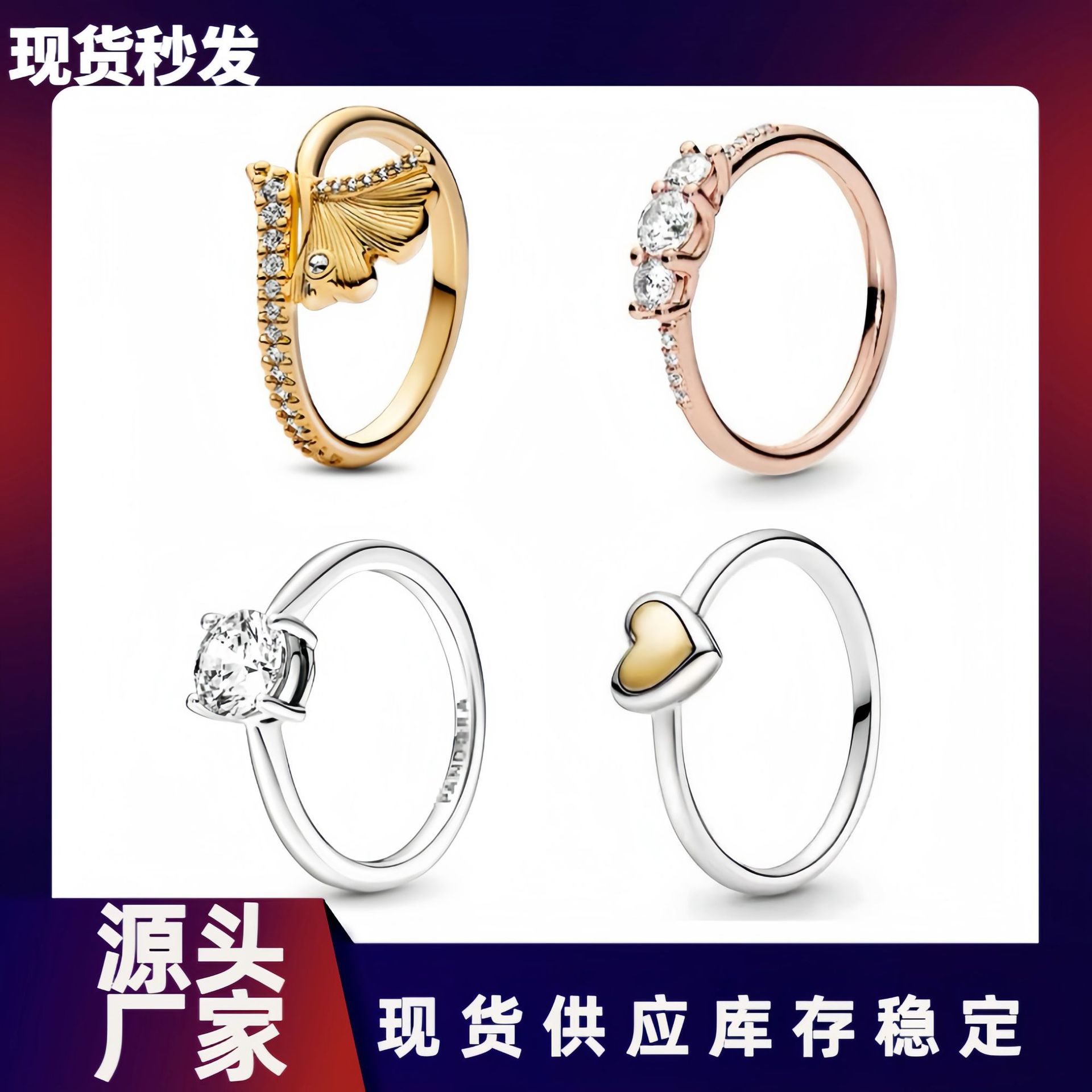 Pan's New White Copper Series Ginkgo Flying Ring Gold Women's Retro Design Fashion Women's Ring